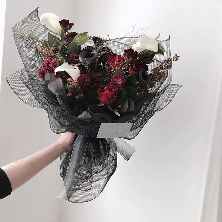 在选择包装纸的时候,最好选择相对较暗、跳跃性较弱的颜色。如果花材本身为比较暗的颜色的话,则最好不要用这种对比色的搭配法,这样只会显得花更暗沉。