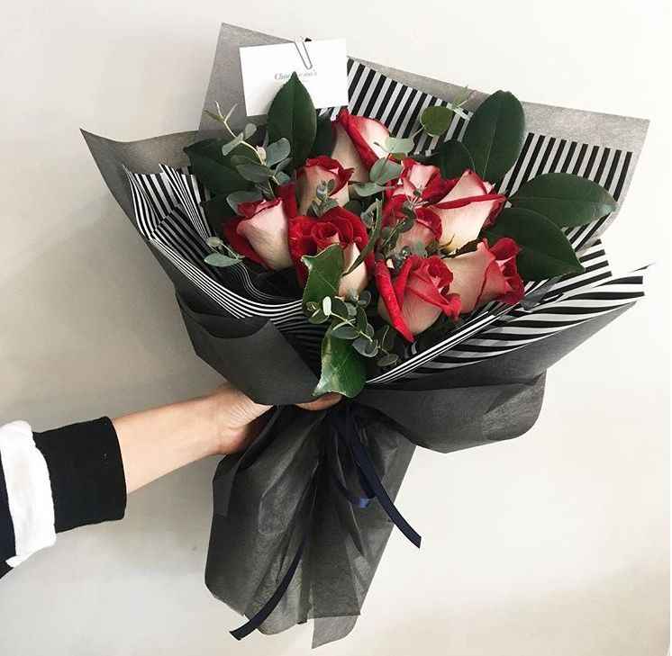 在花束包装的色彩搭配中,单一色搭配会显单调,没有层次;多色对比又太花俏,抢了花的颜色,所以建议用双色搭配。相对于单一色调的传统包装,双色协调搭配包装的效果更能给人造成较大的惊喜。