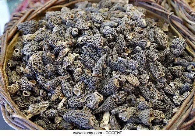 国际上较为常见的美味羊肚菌M. esculenta就是一种黄色羊肚菌,菌盖黄褐色,晒干变深。公认最顶级的尖顶羊肚菌M. conica,则属于黑色羊肚菌的成员,气味香郁丰富,散发着坚果和熏木的芬芳,据说一小盘尖顶羊肚菌可换来一瓶品质不错的好香槟。