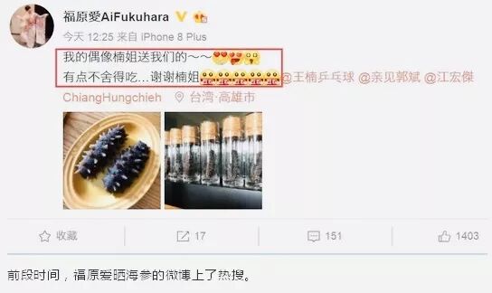 还被福原爱在微博上晒出。
