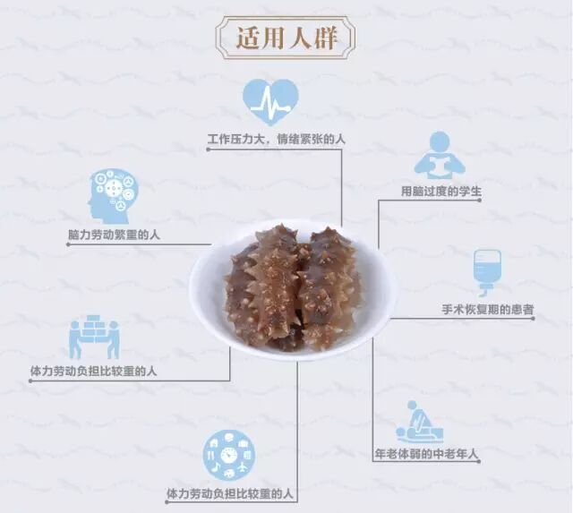 除此之外,海参还具有调节血脂、血糖。长期食用还能改善睡眠,提高记忆力,促进生长发育。