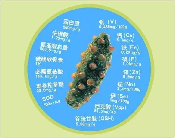 解决“亚健康”问题,简便而行之有效的应对良策,就是讲究合理膳食,科学实验证实,海参是世界上少有的无胆固醇、低糖、低脂肪的动物,富含18种氨基酸(其中有8种是人体自身不能合成的必需氨基酸),丰富的维生素和矿物质,罕见的活性营养成分,如海参酸性粘多糖、海参皂甙、海参自溶酶、硫酸软骨素、牛磺酸等50多种人体所需的营养物质。 其中海参皂甙、海参多糖及精氨酸、硒、锌等成分能起到良好的调节作用。海参丰富的营养成分中尼克酸和牛磺酸具有明显抗疲劳功效,会令你的身体得到全方位的调节,走出亚健康状态。