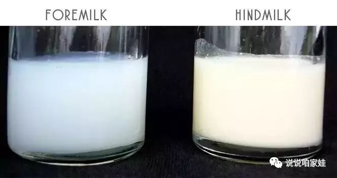 左边是前奶,比较清寡,水分较多,糖分相对较多多,右边是后奶,比较浓郁,脂肪含量较高。