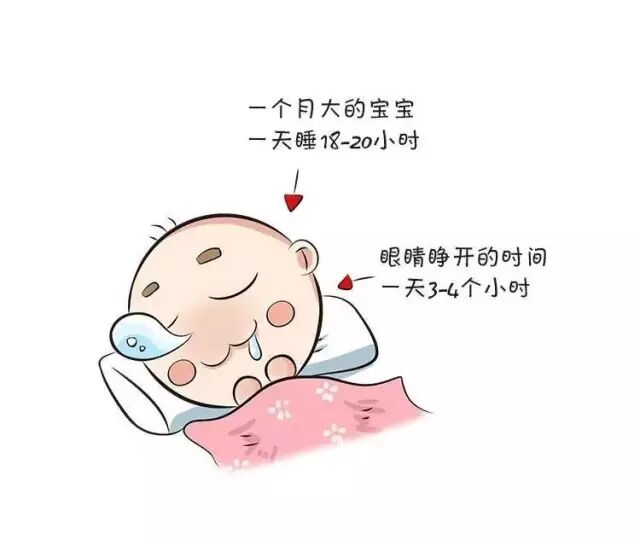 1个月大的宝宝,一天要睡上18-20小时,眼睛睁开的时间一天也就3-4个小时,好多妈妈还真狠不下心来叫醒宝宝吃奶