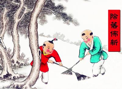 打扫卫生是一种彻底的大扫除。从每间房屋里把垃圾扫出门外。腊月三十到正月初五以前,一般是不允许搞卫生的,也扫扫地,但只能在屋里扫,垃圾只能先放在屋里的拐角处。