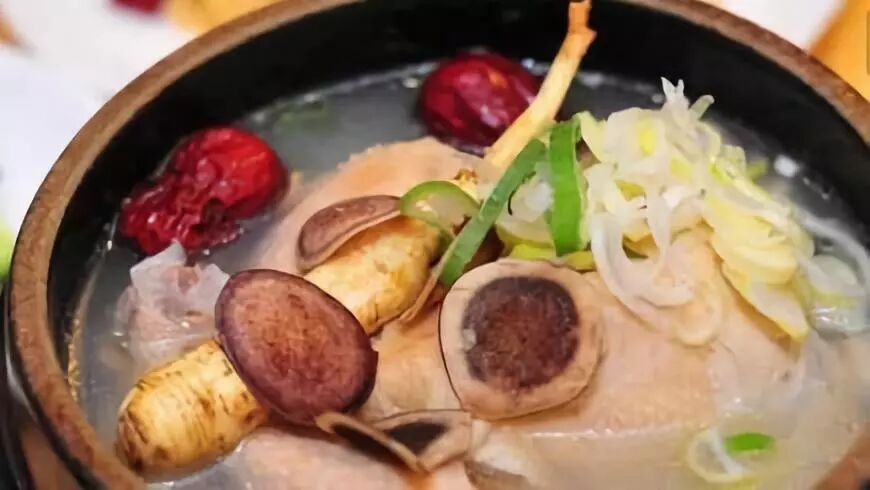 做法:鸡肉洗净后与生姜、人参、鹿茸一起放入汤锅中,加入适量水,煲3小时,即可饮用。