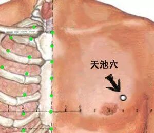 天池穴是女性的快乐穴,不仅下奶,还能预防乳腺癌,让女性心胸变得开阔,不容易生气。天池穴的位置在乳头外1寸的位置上,取穴之后咱们用食指和中指按揉天池穴20次,有局部酸胀的感觉就可以停了。