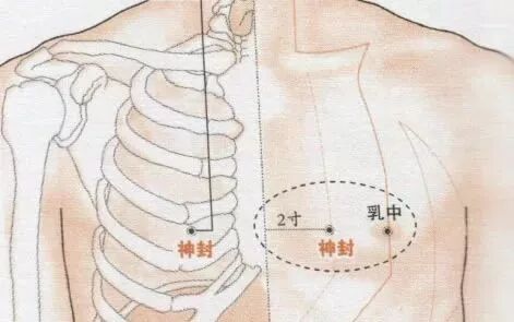 神封穴的位置也正好跟天池相反,在乳头内侧1寸处。同样采用揉法按揉20次即可。