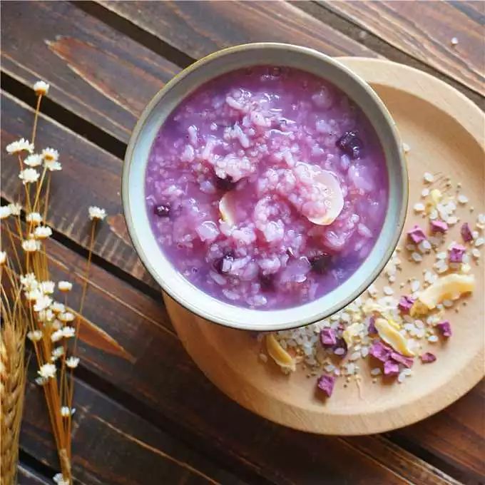 做法:百合和银耳提前泡发,银耳去掉黄蒂,清洗掉杂质,撕成小朵,百合清洗干净 。将大米淘净,加入银耳、百合浸泡 2-6 小时;紫薯去皮切成小块备用;将大米、银耳、百合一同放入锅中,加入开水,待熬制 7 分熟后,加入紫薯;待所有材料全部煮熟后,再转文火熬煮 20 分钟即可。