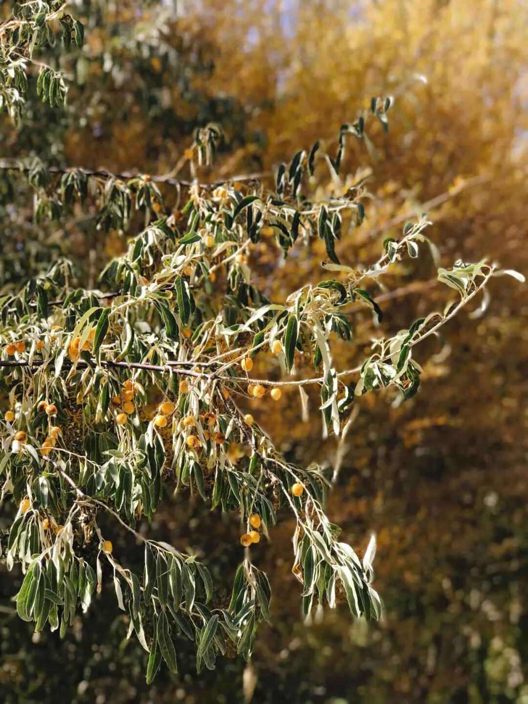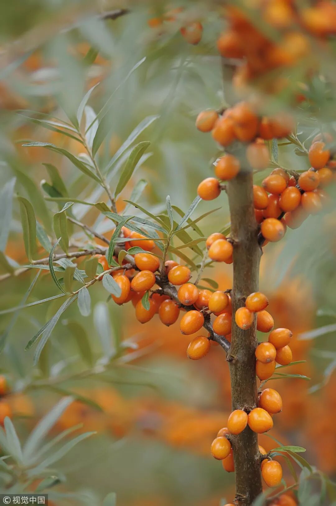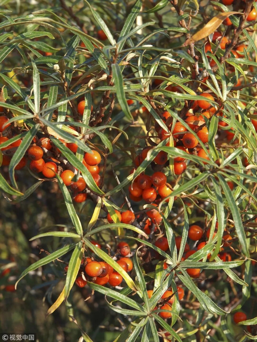 沙棘灰绿色的叶子细而狭长,