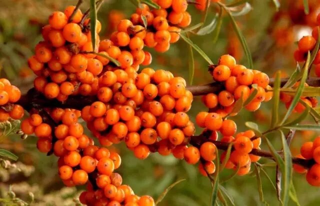 沙棘果实营养丰富,据测定其果实中含有多种维生素、脂肪酸、微量元素、亚油素、沙棘黄酮、超氧化物等活性物质和人体所需的各种氨基酸。其中维生素C含量极高,是猕猴桃的2—3倍,素有维生素C之王的美称。