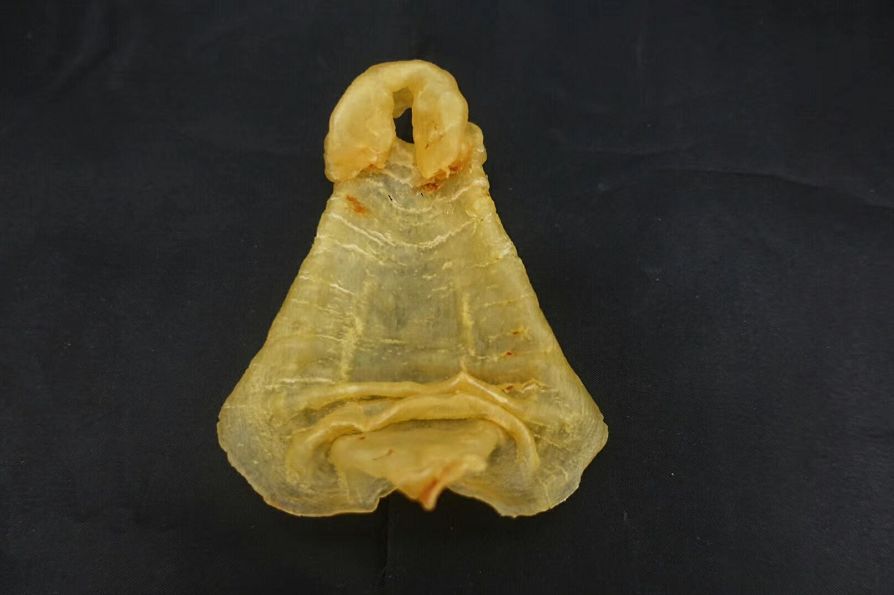 鱼胶,其实就是鱼肚,是鱼鳔的干制品,富胶质,故名花胶。中国人从鱼中剖摘鱼肚食用,可追溯至汉朝之前。1600多年前的《齐民要术》就记载有现今之所谓鱼肚了,从中医角度,花胶极有滋补食疗作用。