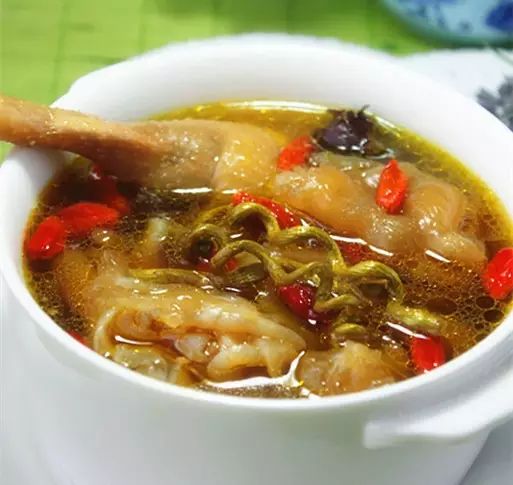 材料:鱼翅、花胶、虫草、枸杞、红枣、玉竹、猪骨头。