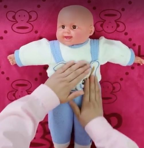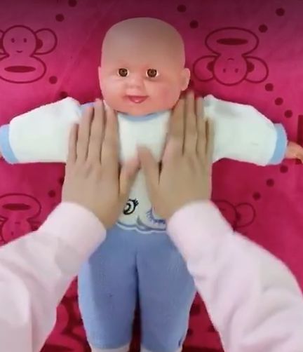 ③ 慢慢用力(力道不能太大,宝宝内脏很脆弱),到小腹的时候坚持 1、2 秒钟;