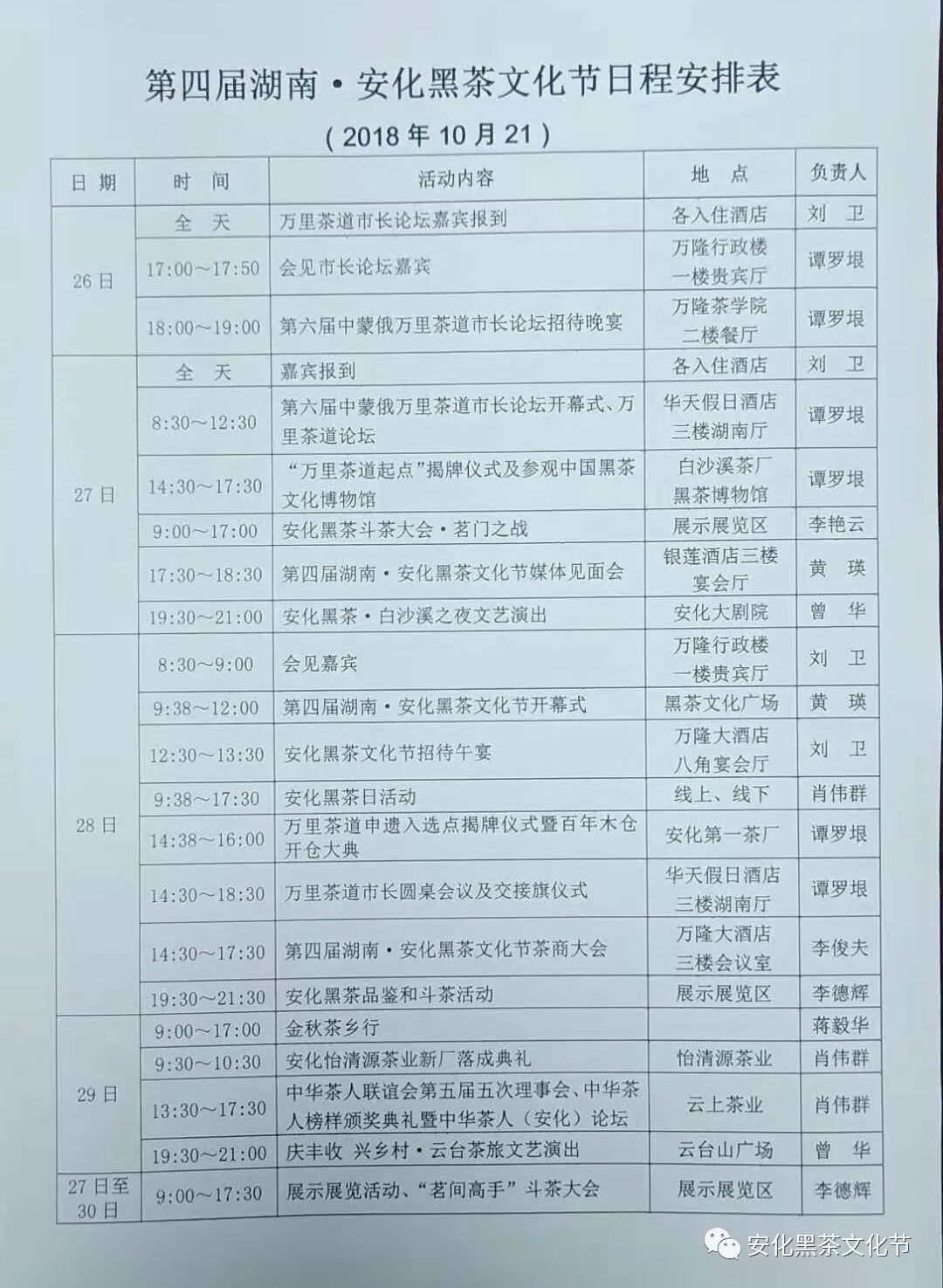 亲,我们已经听到第四届湖南·安化黑茶文化节的“噔噔”地脚步声了,感受到了参加盛会嘉宾“呯呯”地心跳声了,但四天的盛会、众多的重大活动、数不清的宣传信息可能会让您眼花缭乱、应接不暇,小编试图让您足不出户,1分钟让您读懂4天盛会!提前领略盛会风采!