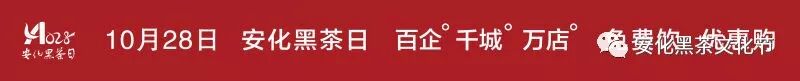 2018年10月28日为首届湖南益阳安化黑茶日——安化黑茶的“双11”节;安化黑茶的世界共享日。