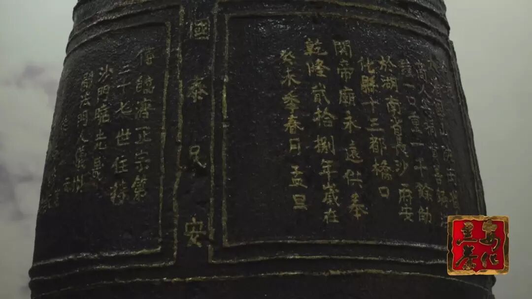 这是乾隆年间,山西和陕西两省的商人捐资铸造的,它的寓意就是风调雨顺、国泰民安,代表了当时两省商人和安化的贸易往来,其实也是一种情谊。所以说它其实是当时那个时代黑茶贸易的一个见证,同时也是我们安化茶人和当时山陕茶商情谊的见证。