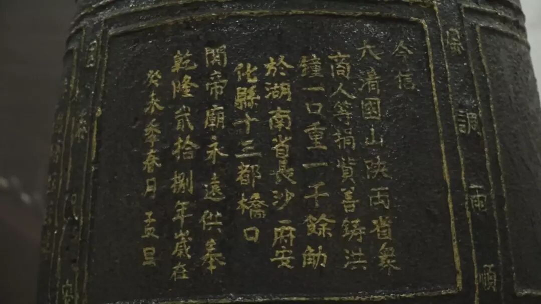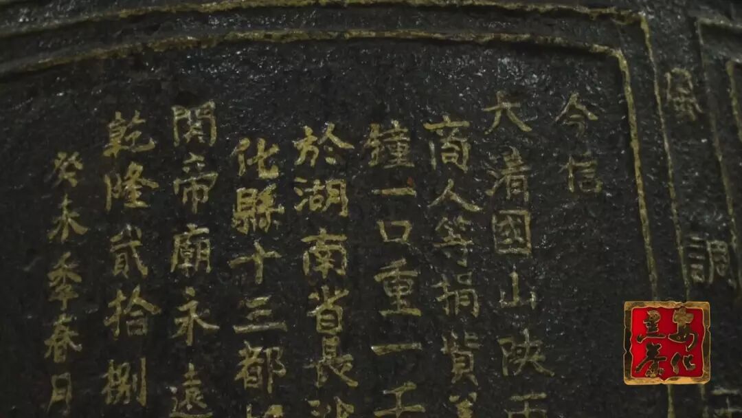 茶钟碑文为:“大清国山陕两省众商人等捐资善铸洪钟一口重千余斤,于湖南省长沙府安化县十三都桥口关帝庙永远供奉。乾隆二十八年岁在癸未季春月孟旦。”