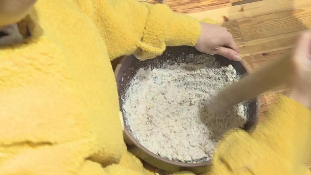其实掌握了他的惯性以后就不会很累的。我是从小看着我的母亲擂擂茶长大的,在十几岁的时候她就会教我擂擂茶,我刚开始擂的时候挺兴奋的,也不太会擂,但是,擂着擂着,自己就找到感觉了,然后就会很喜欢去做这件事情。