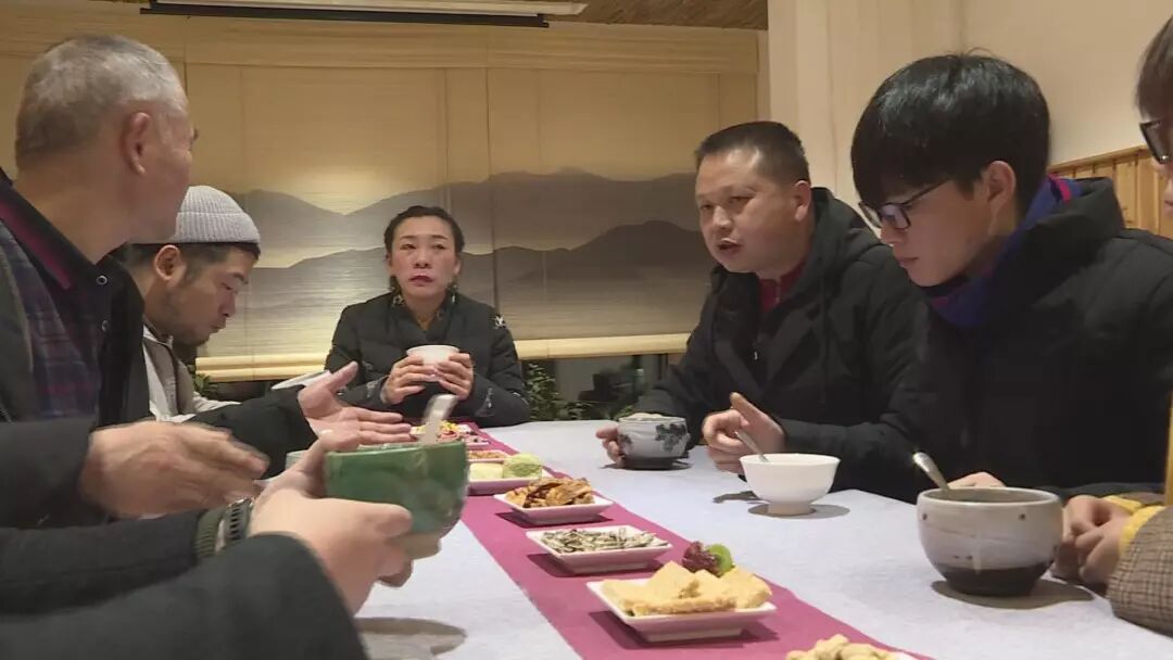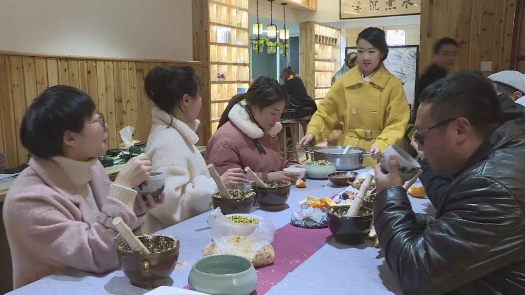 这个梅山擂茶的味道可以用三句话来形容:第一是甜而不腻,第二是咸而不腻,第三句话呢就是粗中带柔,柔中带粗。