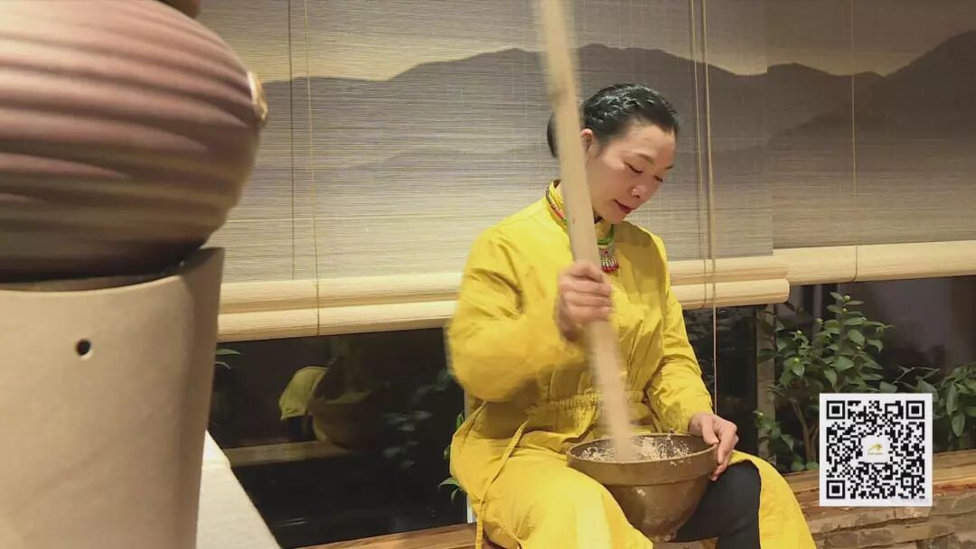 这个擂茶体现了我们梅山人的智慧。那个擂钵口朝天,底是小底。他就是我们《易经》中的“阴”。而那个擂杵,他是用来打擂茶的器具,它象征的就是“阳”,这就是一种阴阳结合。