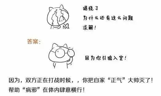 处理发烧的思路:搞清楚发烧的根本原因,然后帮助我们身体的正气,帮助打赢敌人,这样自然就会退烧了。