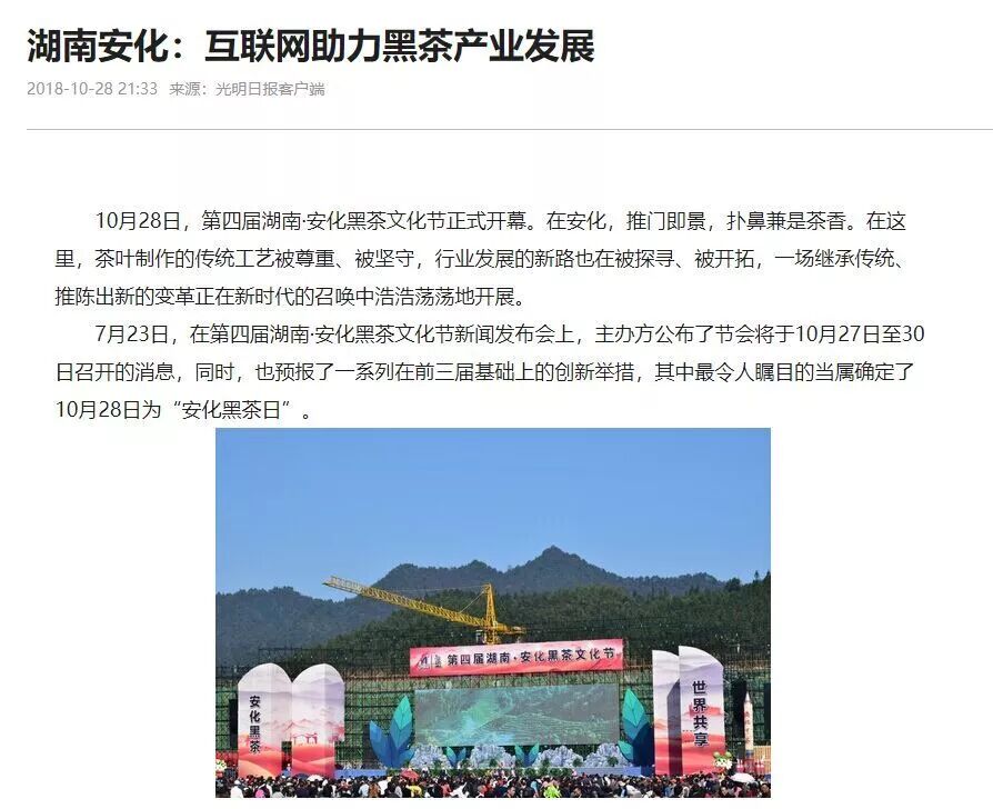 光明日报刊发报道《湖南安化:互联网助力黑茶产业发展》
