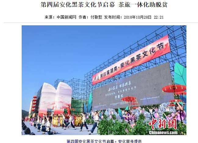新华网刊文《第四届安化黑茶文化节开幕 茶旅一体化助脱贫》
