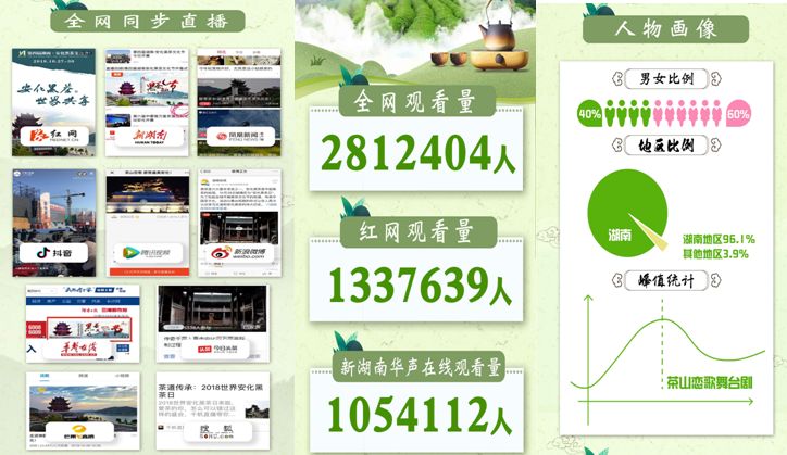 湖南经视联合芒果V直播、凤凰网、新湖南、华声在线、新浪、网易、腾讯、搜狐、今日头条等11家网络平台对开幕式进行了全程直播,全网观看量2812404人,整个直播展示了湖南安化的脱贫成果和最新面貌,增进了省内外网友对“安化黑茶”的了解。