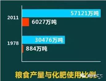 ▲从1978到2011,在这30年中,我国粮食增产了87.4%,而化肥使用量却6.82倍!