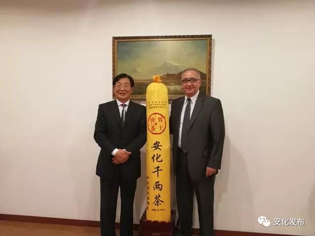 在亚美尼亚大使馆赠茶仪式上,大使介绍,亚美尼亚有着喝茶的传统,而茶就是从中国进口。安化代表介绍说,大使提到的就是著名的万里茶道,而安化就是这条万里茶道的起点。亚美尼亚大使馆外交官们对到安化去,与安化签订战略合作协议表现出浓厚的兴趣。