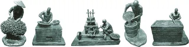 ▲ 安化黑毛茶制作工艺流程,依次为采摘、杀青、揉捻、渥堆、干燥