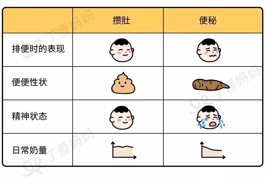 虽说攒肚很正常,但孩子几天不拉,很多妈妈担心会是便秘,毕竟这俩实在太容易混淆了。