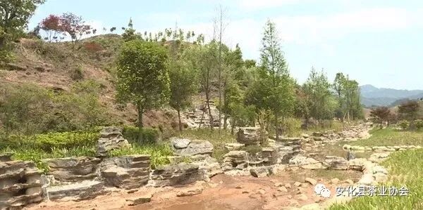 在施工现场可以看到,园内公路像一条巨龙,蜿蜒盘旋在各山头,将一个个独立的山头串联起来。挖掘机来回穿梭于山头进行削坡,施工人员浇筑荷塘挡墙,修筑堡坎,栽茶种树……现场一派繁忙景象。