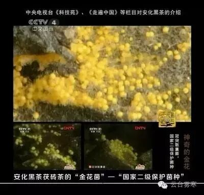 1953年中国茶业公司设专门小组与黄海化学工业所联合进行研究,认为“金花”菌归于灰绿曲霉,不属于黄曲霉,“金花”是子囊堆,不是曲霉的分生孢子,属于有益微生物。(我们俗称的“益生菌”)