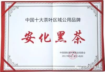 2017年,安化黑茶获评“中国十大茶叶区域公用品牌”。