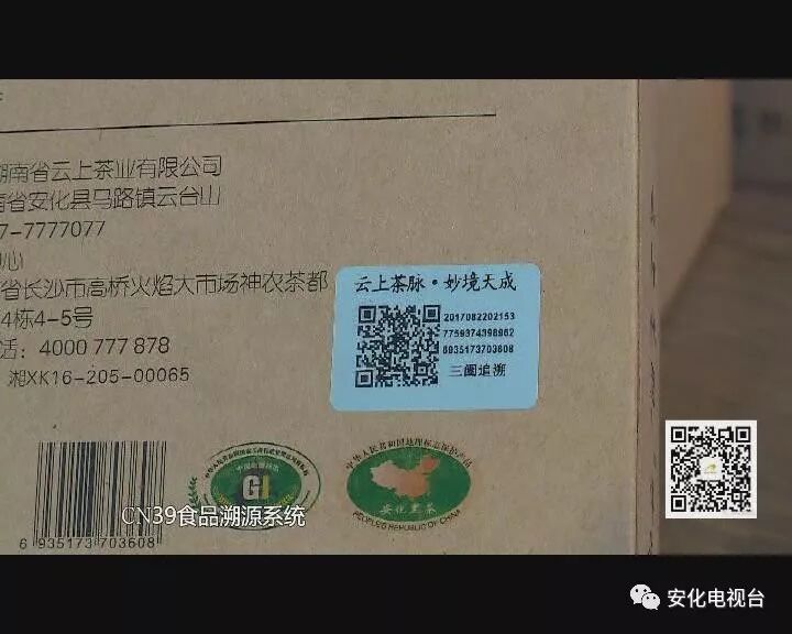 云上茶业董事长刘波说:“我们云上的每一盒茶 都有一个独立的识别码。CN39食品授权系统 消费者买到我们的茶叶以后,直接用手机扫一扫 就可以知道茶的来龙去脉。