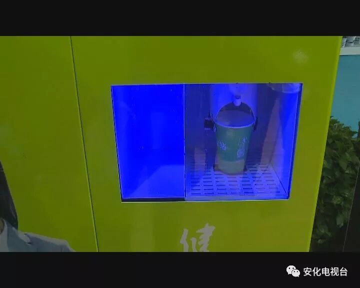 支付成功之后,这里马上就有茶杯下来,非常方便。茶汤大概六到七分满,温度也不会特别高 为了安全着想。一杯热腾腾的安化黑茶就到了手上,可以试一下茶的口感,这个茶的口感比泡出来的更醇和一些。而且我们这个机器 就算新茶投放进去,茶的苦味涩味腥味都会被机器淡化掉,更能体现黑茶里面30几种维生素 体现的比较全面。”