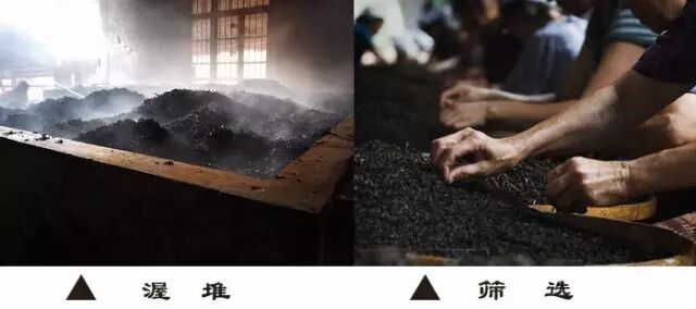 这个过程称之为“渥堆发酵”,也称为前发酵,它是在制作黑毛茶的渥堆过程中形成。