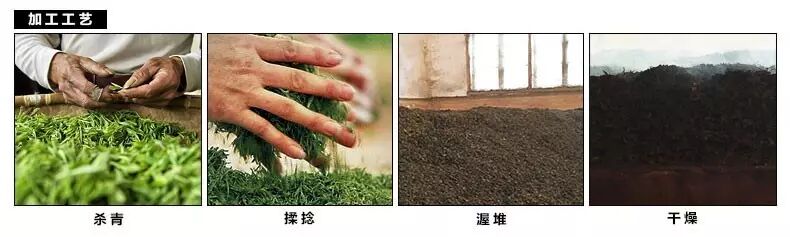 2、发酵工艺—三次发酵(鲜叶杀青“渥堆发酵”,产品加工“汽蒸发酵”,成品储存“自然发酵”),发酵食品有益健康。