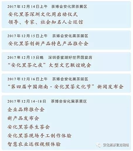 此次安化黑茶深圳文化周将于12月14-18日在深圳会展中心隆重举办,具体看点如下: