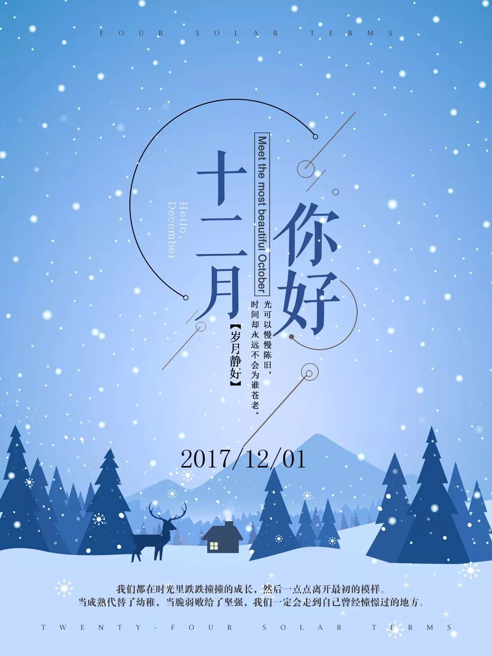3、我们都在时光里跌跌撞撞的成长,然后一点点离开最初的模样。当成熟代替了幼稚,当脆弱败给了坚强,我们一定会走到自己曾经憧憬过的地方。12月,早安!
