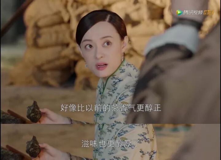 剧中多次提到泾阳茯茶、金花茯茶、湖南新茶等关于茶的字眼,尤其在后期一集中,很多观众注意到周莹被走投无路的沈四海命人将船底凿穿,导致已订出的五千箱茶叶全部进透了水,损失了上十万两银子时,周莹却因祸得福,偶然发现一个秘密——进水后的茶叶更好喝。