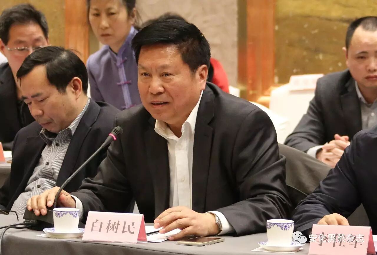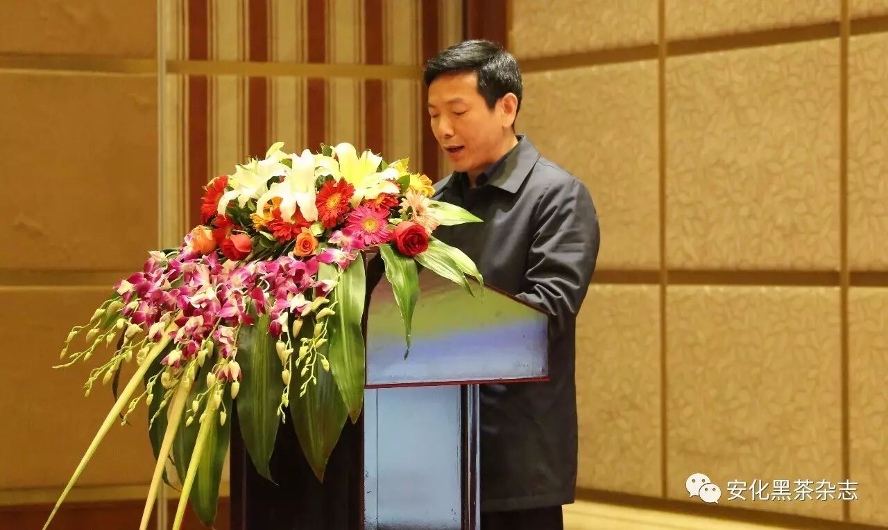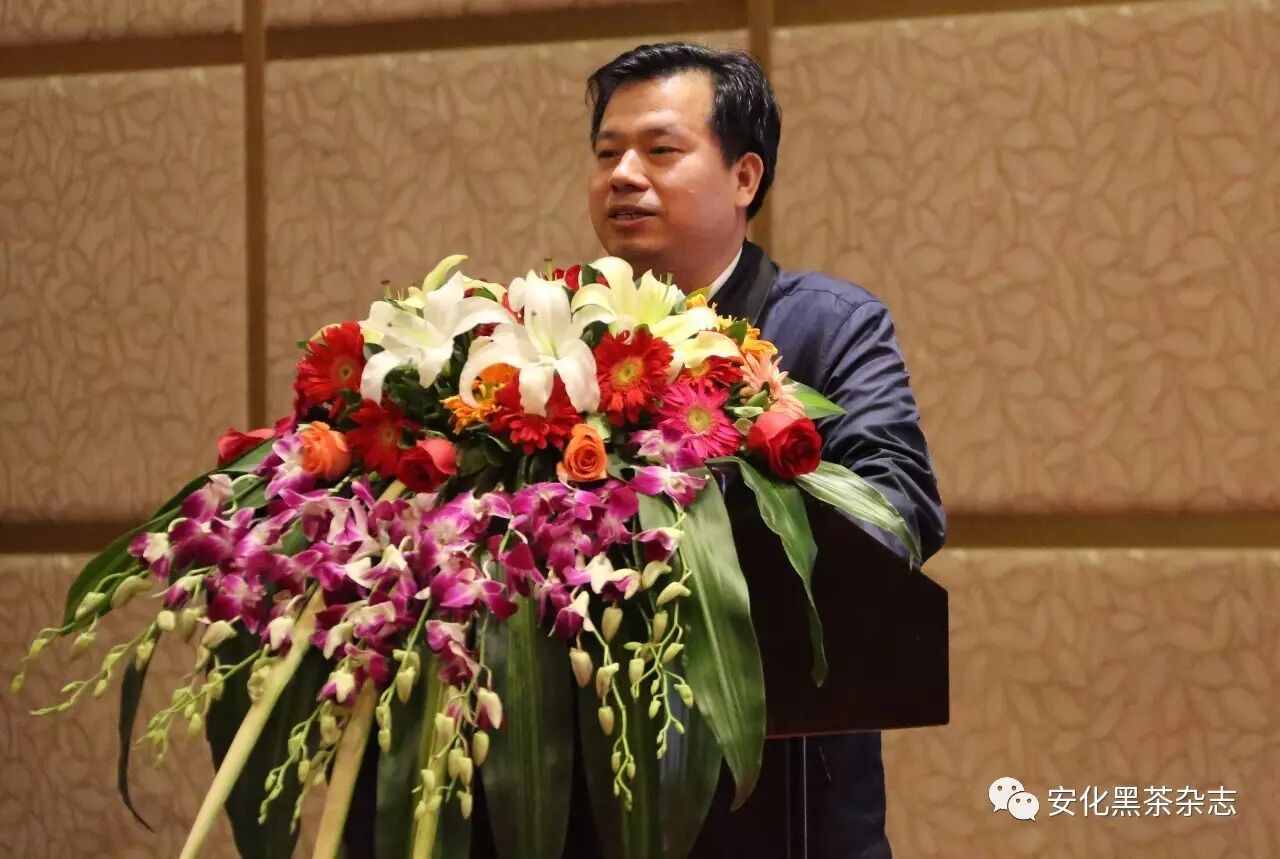 熊哲文书记在致辞中介绍了安化社会经济状况,特别是黑茶产业发展情况。安化县作为集山区、库区和革命老区于一体的国家扶贫开发工作重点县和武陵山片区扶贫攻坚试点县,近年来致力于“绿色崛起”,积极探索产业发展与精准扶贫相结合。安化黑茶产业作为精准扶贫的主导产业,不仅惠及108万安化人民,而且成为辐射1000多万人口的湖南武陵山片区扶贫攻坚战的中坚力量。2016年,安化县实现茶叶加工量6.5万吨、综合产值125亿元,荣登全国十大生态产茶县榜首,连续五年位居全国重点产茶县前四强,黑茶产量连续十年全国第一。安化黑茶产业对地方经济发展贡献巨大。2016年安化茶行业税收达2亿元,连续四年税收过亿元,成为全国茶业税收第一县。