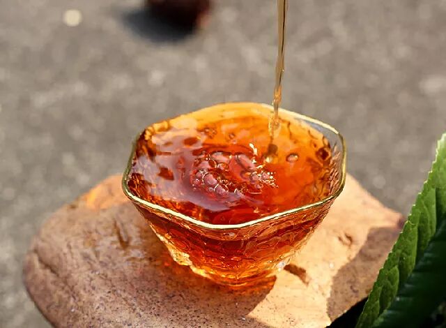 红褐:汤色红浓,红中透紫黑,匀而亮,有鲜活感。观察叶底,多呈褐色欠柔软,滋味较醇和。