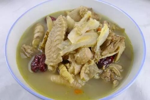 功效: 这个汤适用于妊娠贫血,当归补血、黄芪补气,可改善血虚引起的手足冰冷,增强造血功能。 如果新妈妈不喜油腻的口味,可以将鸡汤表层的油脂捞去再食用。