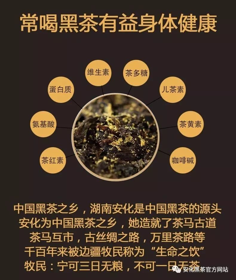 安化黑茶具有和其他茶类相似的保健功效。安化茯砖茶上生长有金花,这种金花成为了安化黑茶神秘色彩和神奇保健功效的源头。