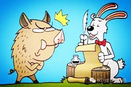 一只野猪走了过来,问:"兔子你在写什么?"