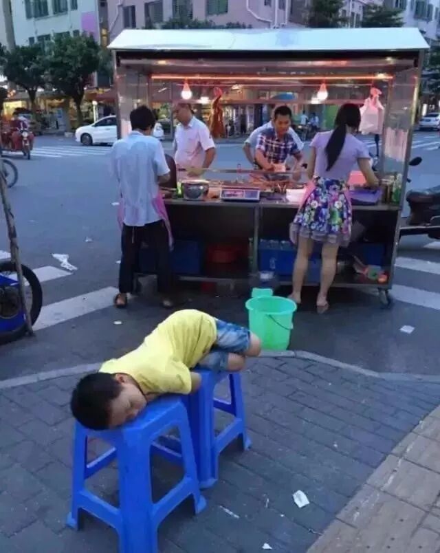 父母忙着摆夜摊做生意