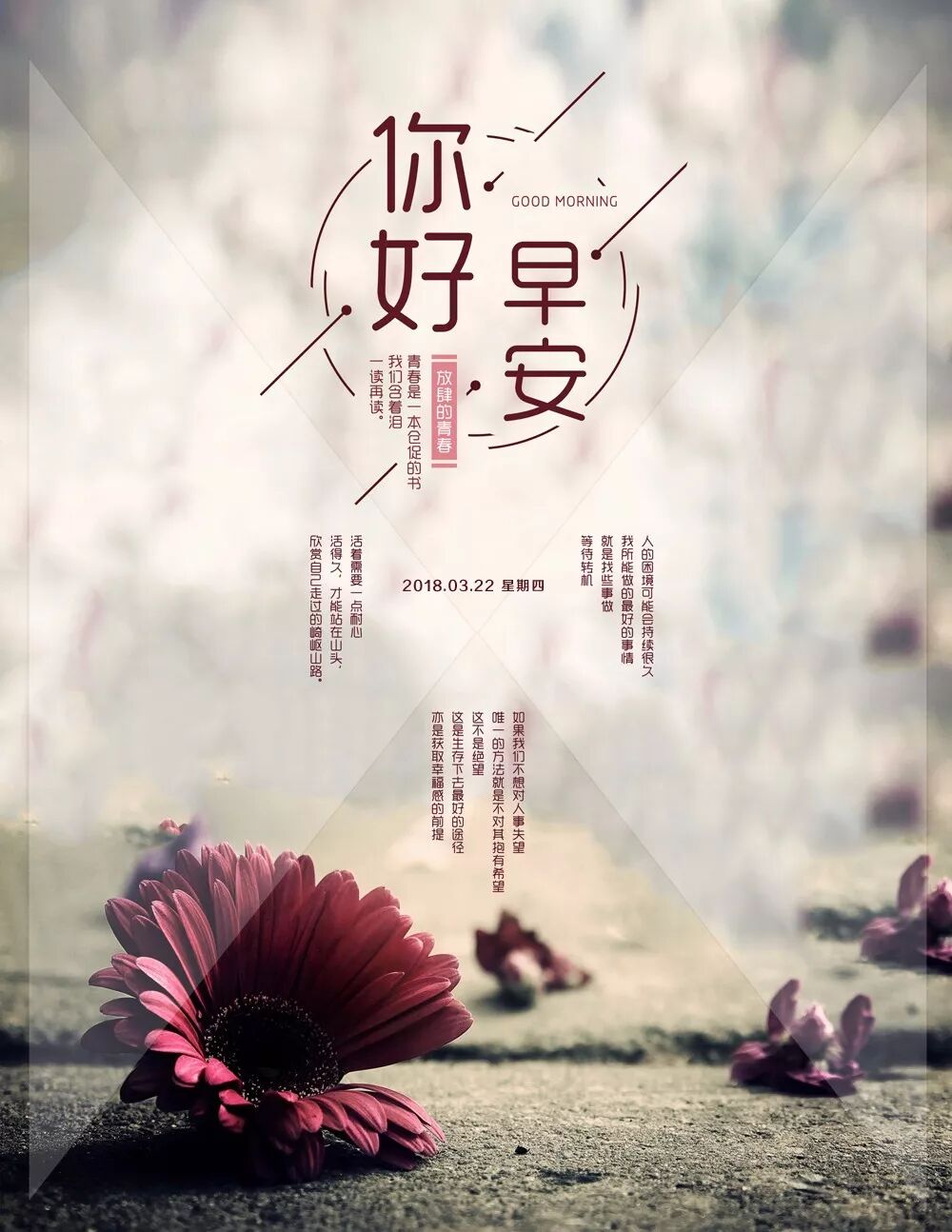 1、人生,就是一场自己与自己的较量:让积极打败消极,让快乐打败忧郁,让勤奋打败懒惰,让坚强打败脆弱。在每一个充满希望的时候,告诉自己:努力,就总能遇见更好的自己!早安!